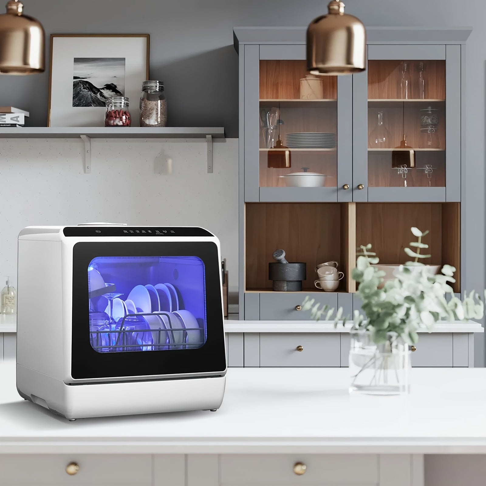 Countertop Dishwasher with 5+1 Programs, Baby Care, Dual Spray, High-Temp, Air-Dry, Timeing Function, No Hookup Needed, Portable Dishwasher with 1.32gal Built-in Water Tank, Mini Dishwasher for Home, Apartments, RVs