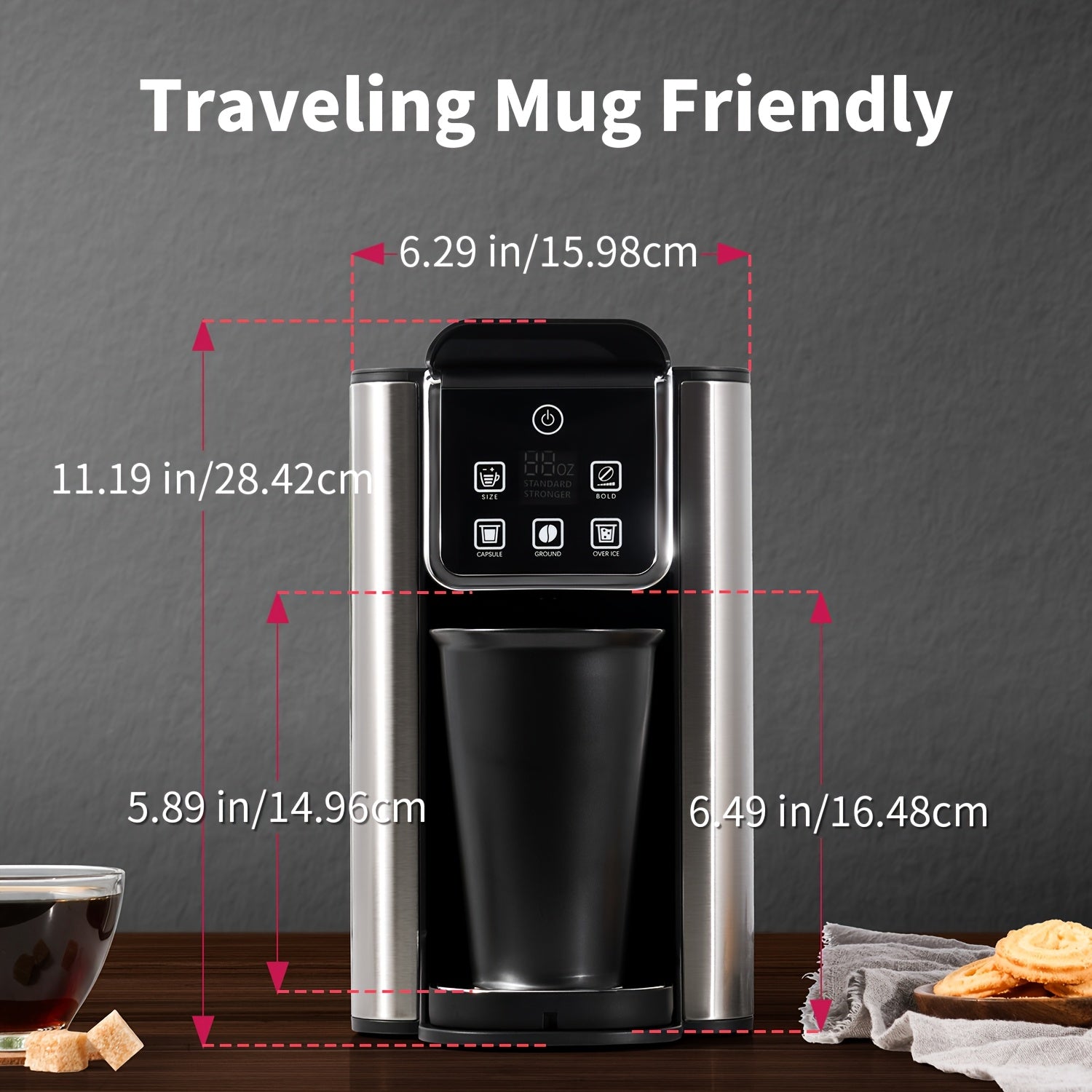 Hot & Iced Coffee Maker with Bold Setting, Single Serve Coffee Maker for K Cup And Grounds, 6-14oz Brew Sizes, 50oz Removable Water Tank